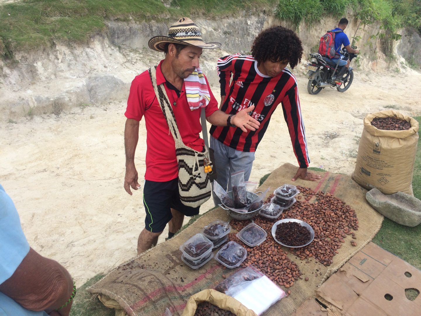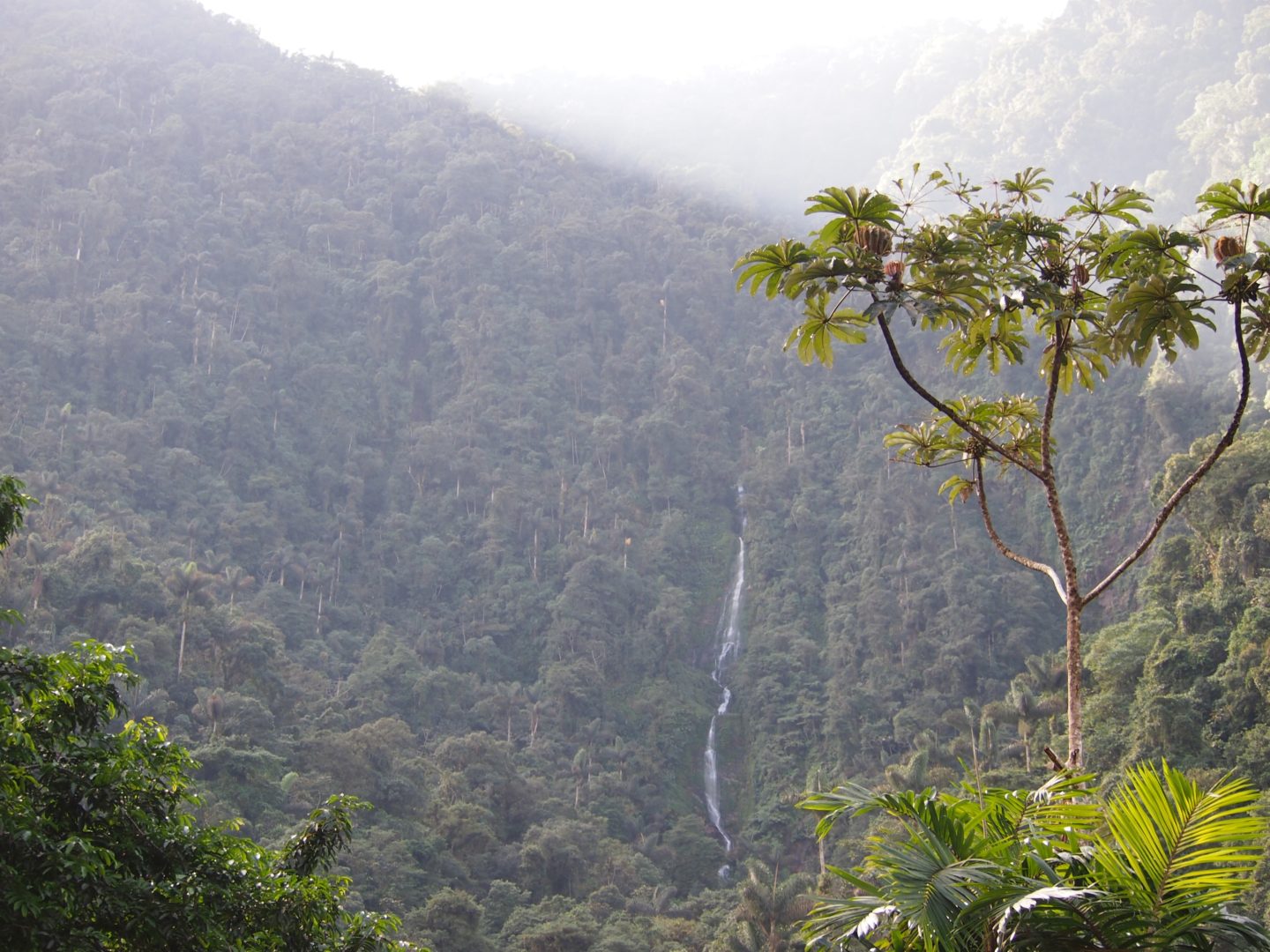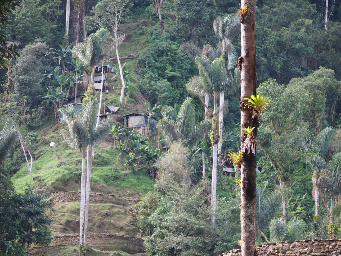 Der erste Tag führt uns von Mamey langsam in den Urwald anfangs auf einer – wir würden sagen Forststraße. Wir nähern uns den über und über grün bewachseneren Bergen der Sierra Nevada. Dazwischen sind immer wieder Lücken im Bewuchs zu sehen. „All diese freien Stellen wurden früher zum Coca-Anbau genutzt,“ erklärt einer der drei Führer. Seit einer ganzen Weile sei der Anbau der berauschenden Blättern von der Regierung nun schon verboten und im Norden des Landes auch einigermaßen durchgesetzt. „Die indigene Bevölkerung darf nach wie vor Coca züchten, denn es ist ein Teil ihrer Kultur und wird für Rituale benutzt,“ erfahren wir weiter.