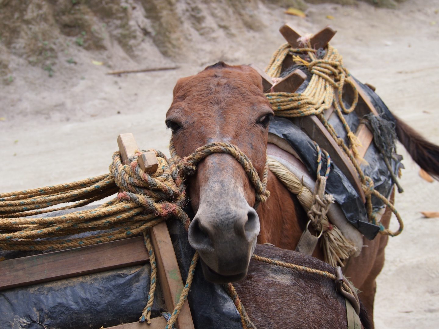 Am zweiten Tag überqueren wir den Fluss an vielen Passagen. Schuhe und Socken aus, Flipflops an und das erfrischend kühle Wasser mit Hilfe der Führer durchqueren. Füße möglichst ohne Sand wieder in Socken und Schuhe rein. Die andere Variante sind schwingende Brücken, die nacheinander mit genügend Abstand begangen werden.