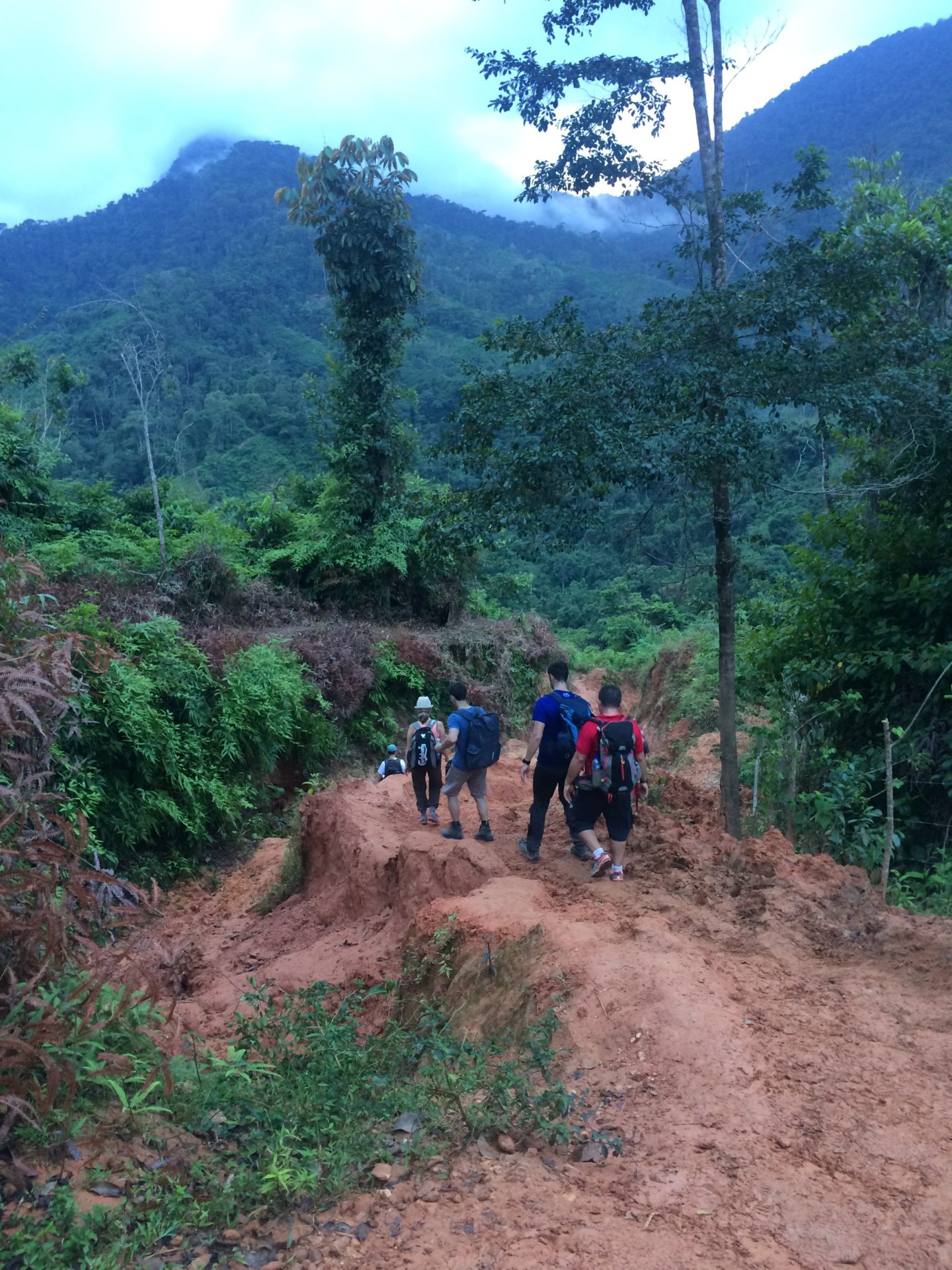 Den Abstieg begannen wir relativ spät, was den Vorteil hatte, dass wir viel Zeit in der verlorenen Stadt hatten. Der steile und recht lange Abstieg wurde jedoch durch einen heftigen Regenschauer zur gefährlichen Rutschpartie, bei der ich mir mein sowieso noch durch den Kreuzbandriss geschwächtes Knie überdehnte. Ein Bambusstock, den wir in der Natur gefunden hatte, unterstützte mich beim Abstieg genau wie das Schweizer Päarchen, das immer auf mich schaute. Wunderbare Bergmenschen! Ich war so dankbar zu wissen, dass die beiden ein Auge auf mich hatten und mir ihre Hand zu Hilfe strecken, wenn es gar zu steil wurde. Der Rest des Abstieg war entsprechend hart und ich war dankbar, als wir kurz vor Einbruch der Dunkelheit im dritten Camp ankamen.