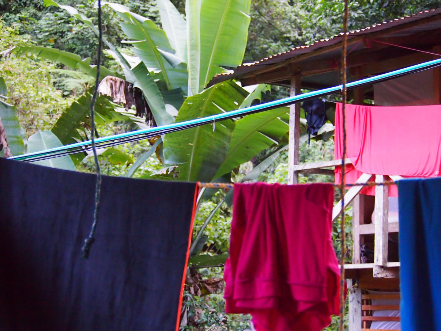 Die morgendliche Zeremonie nach dem Duschen und kräftigenden Frühstück mit Rühreiern, Obst und Toastbrot besteht aus Schmieren: Die erste Schicht ist Sonnencreme, die auf Armen und Beinen verteilt wird. Darüber kommt Nopikex – das einheimische Mückenschutzmittel, das verbunden mit der Sonnencreme eine glitschige Schicht bildet. Selten habe ich so geklebt. Aber es hilft. Nur wenige Mücken wagen sich an meinen eingeschmierten und dauer-schwitzenden Körper heran. Nur gut, dass wir jeden Abend duschen können. So wird man die schmierige Schutzschicht wieder los.